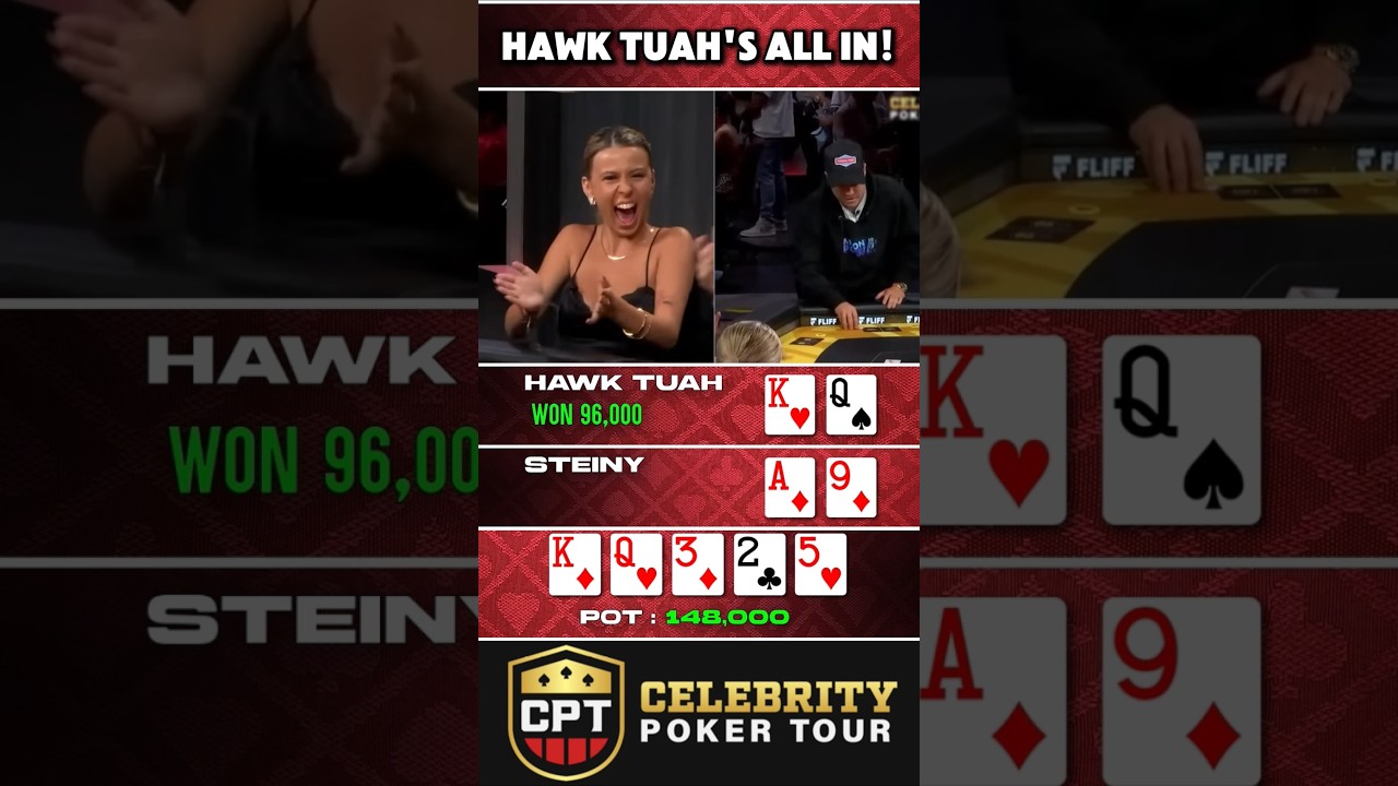 HAWK TUAH GOES ALL IN! #shorts #poker #celebrity