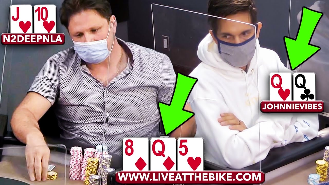 9:04 THIS Crazy Poker Hand Made Him Take His Mask Off!!! JohnnieVibes TOP SET vs Gutshot Straight Draw