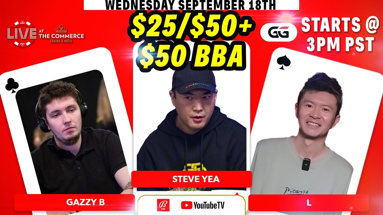 $25/$50+$50BBA STEVE YEA, L, GAZZY B LIVE AT THE COMMERCE GGPOKER