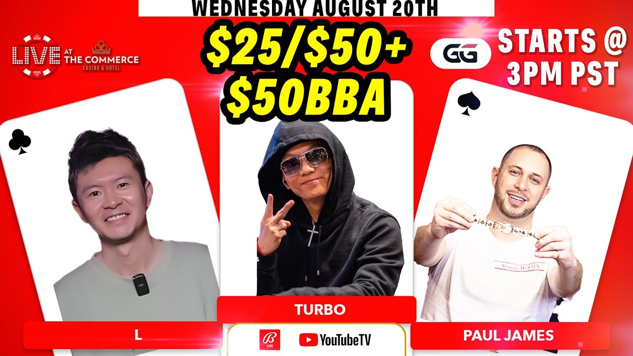 $25/$50+$50BBA WITH TURBO, PAUL Hizer & L w/ Brian Hastings Commentary LIVE AT THE COMMERCE GGPOKER