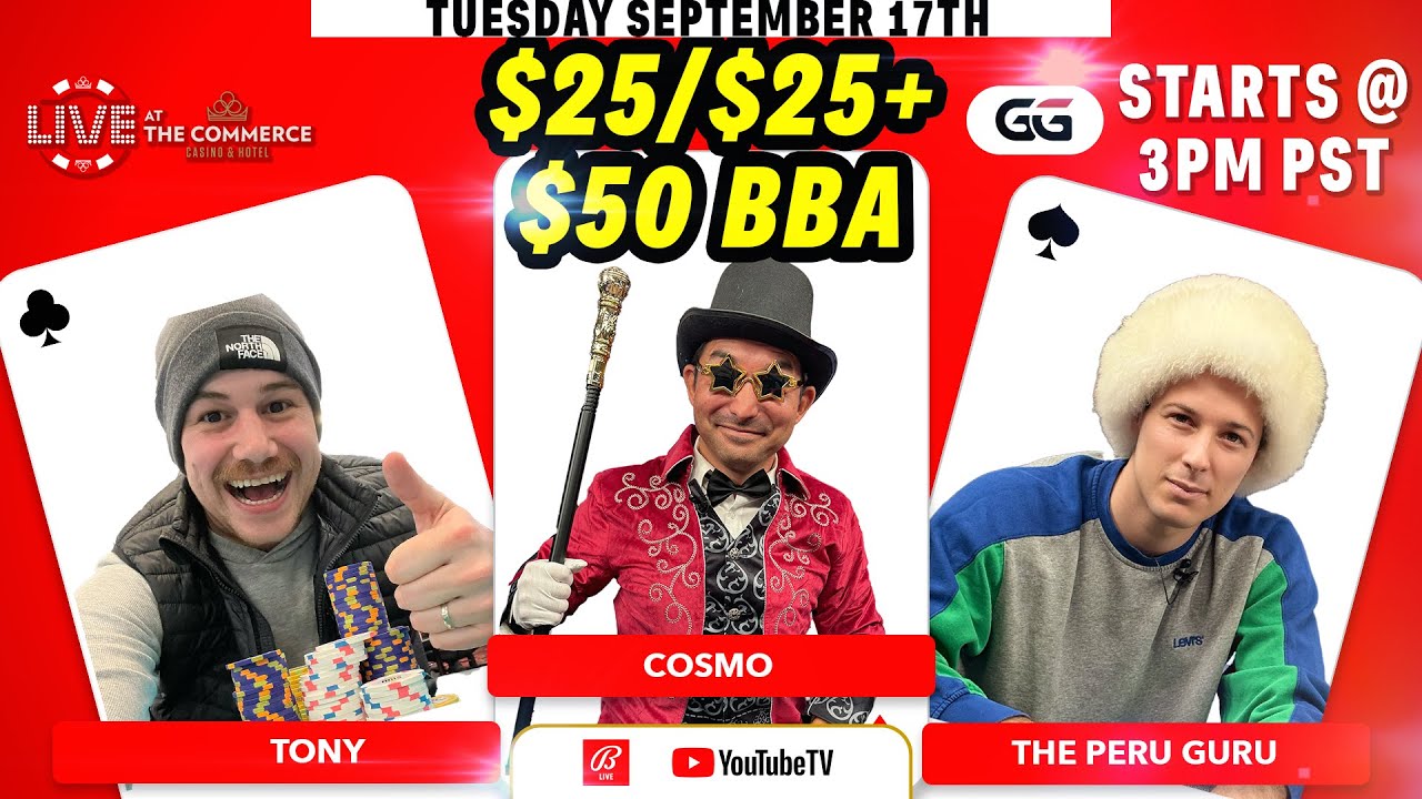 $25/$25 + $50 R.O.E COSMO, PERU GURU, JONNY LIVE AT THE COMMERCE | GGPOKER AND BALLY LIVE POKER
