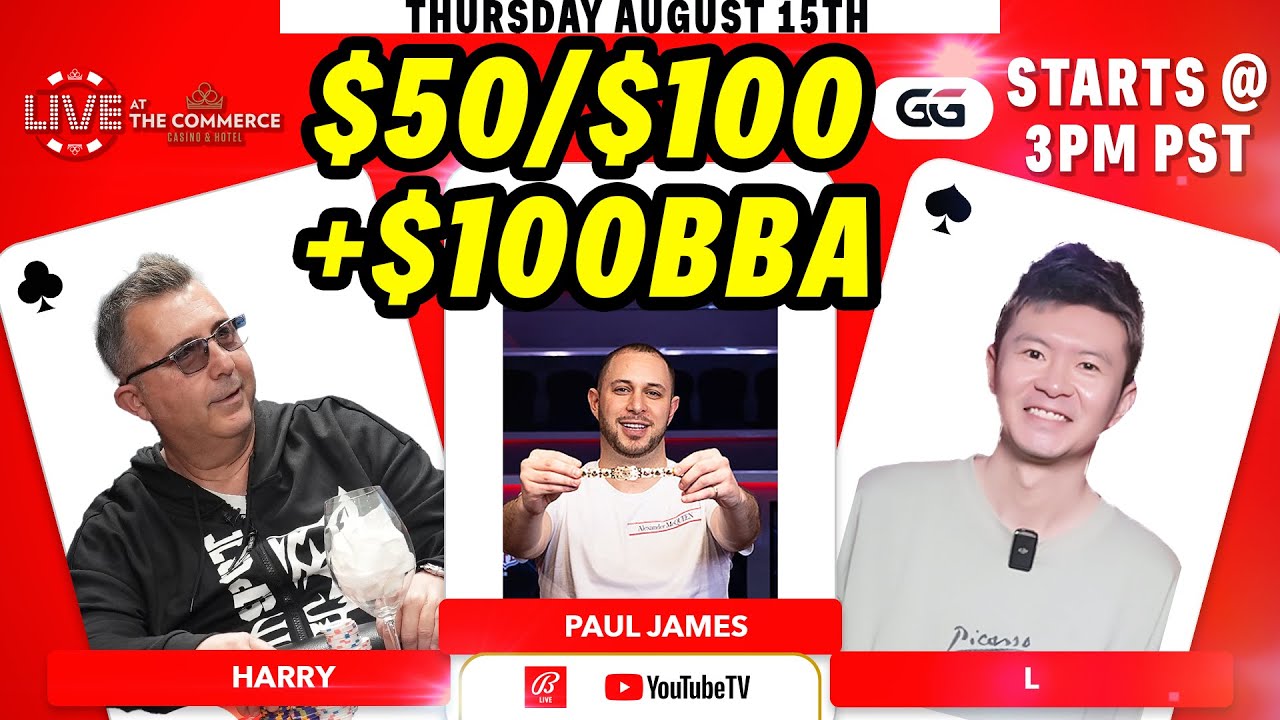 $50/100+$100BBA WITH PAUL JAMES, L AND HARRY LIVE AT THE COMMERCE | GGPOKER AND BALLY LIVE POKER
