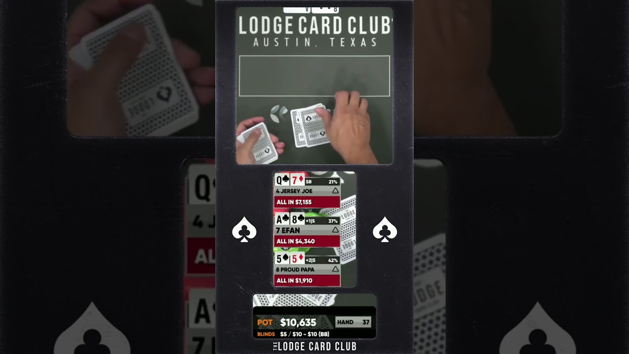 The Lodge Card Club is a members-only social club in Round Rock, Texas (just north of Austin). With 24/7 cash games and 2+ tournaments per day, The Lodge is THE place to play poker in central Texas. The Lodge Live is streamed every Thursday, Friday, Saturday and Sunday at 3PM CT. See The Lodge's cash games, tournament schedule, and more on https://thelodgepokerclub.com/ Advertiser inquiries: https://thelodgepokerclub.com/ads/ FOLLOW THE LODGE CARD CLUB FOR HAND HIGHLIGHTS AND MORE: TWITTER - https://twitter.com/lodgepokerclub FACEBOOK - https://www.facebook.com/thelodgecardclub INSTAGRAM - https://www.instagram.com/thelodgecardclub YOUTUBE HIGHLIGHTS - https://www.youtube.com/@lodgepokerclips