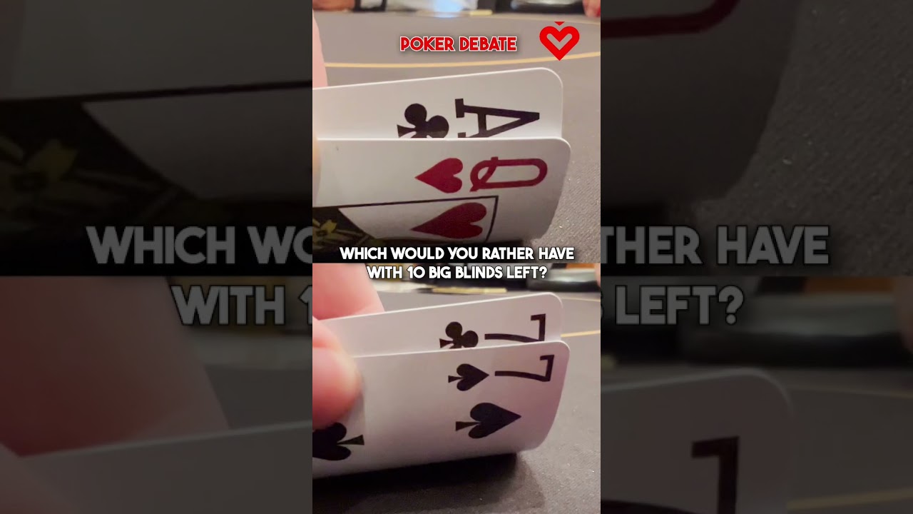 You have 10 big blinds left, which hand would you choose: A♣️Q❤️ or 7♠️7♣️ #poker #shorts