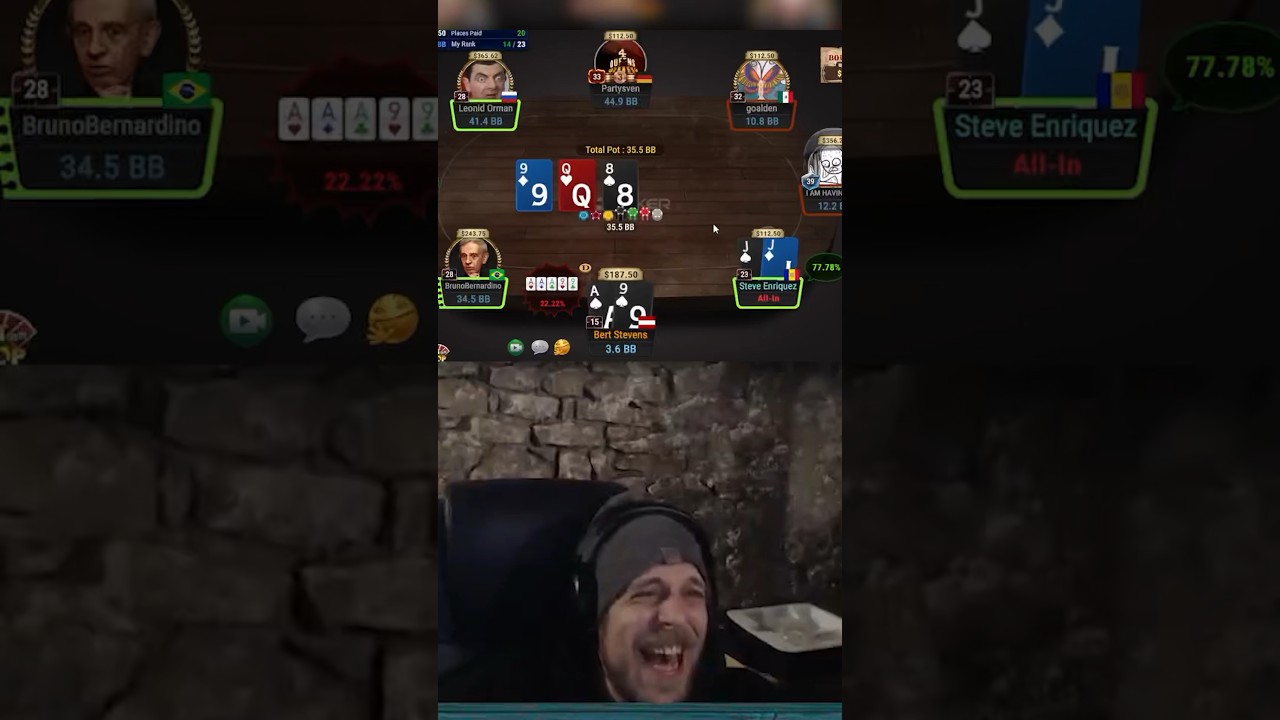 320$ BURBUJA PURA vs BERT STEVENS girafganger7 #poker #allin #bubble #shorts