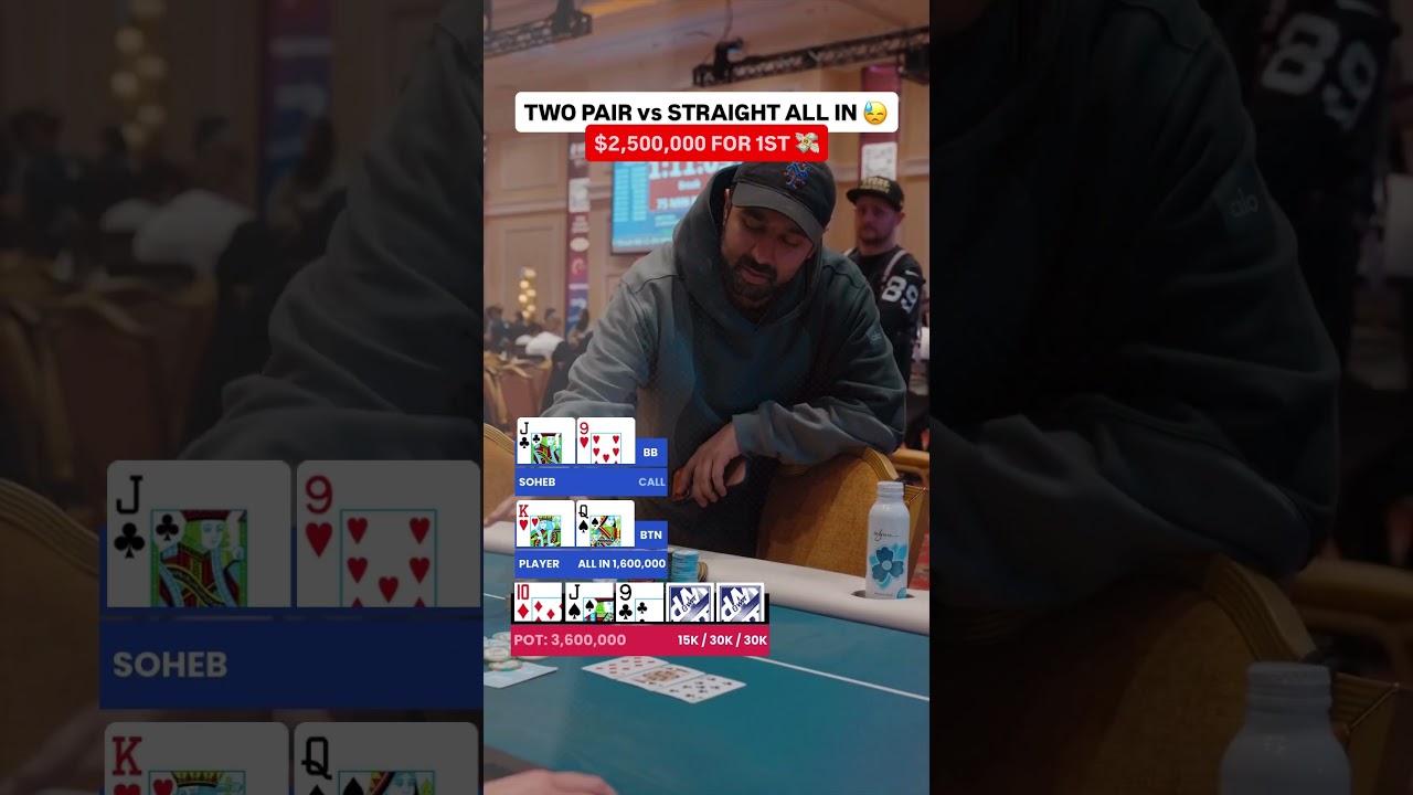 FLOPPED STRAIGHT vs TWO PAIR RACE at $10,400 WPT World Championship π #wpt #poker #shorts